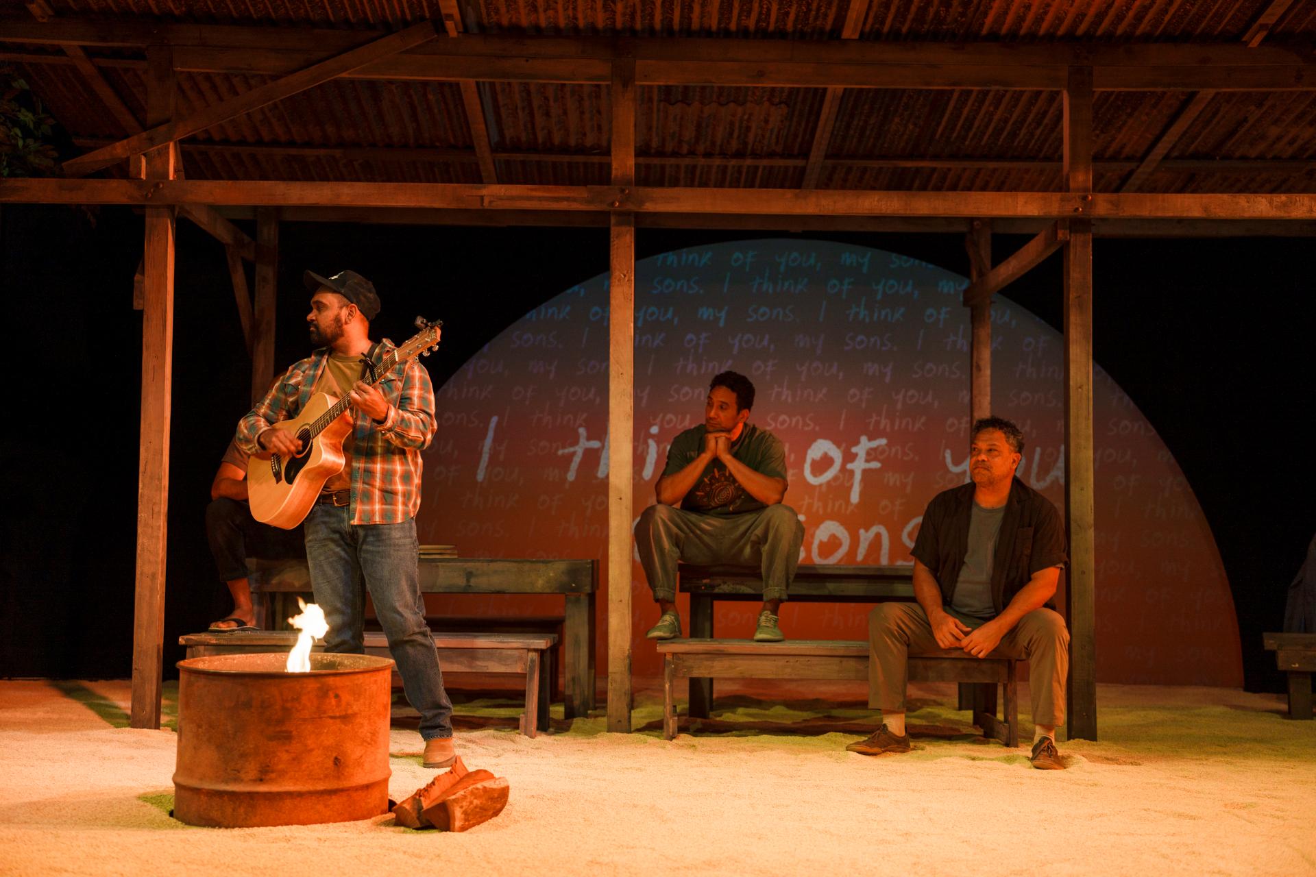 Framed as a men’s group gathered around a campfire, with the letters spoken into lived, embodied presence, Drandic’s direction of Dear Son foregrounds the intimacy that can exist between men. The production reveals the depth of emotional support made possible when fear, shame, and embarrassment are set aside, allowing connection and care to take their place.