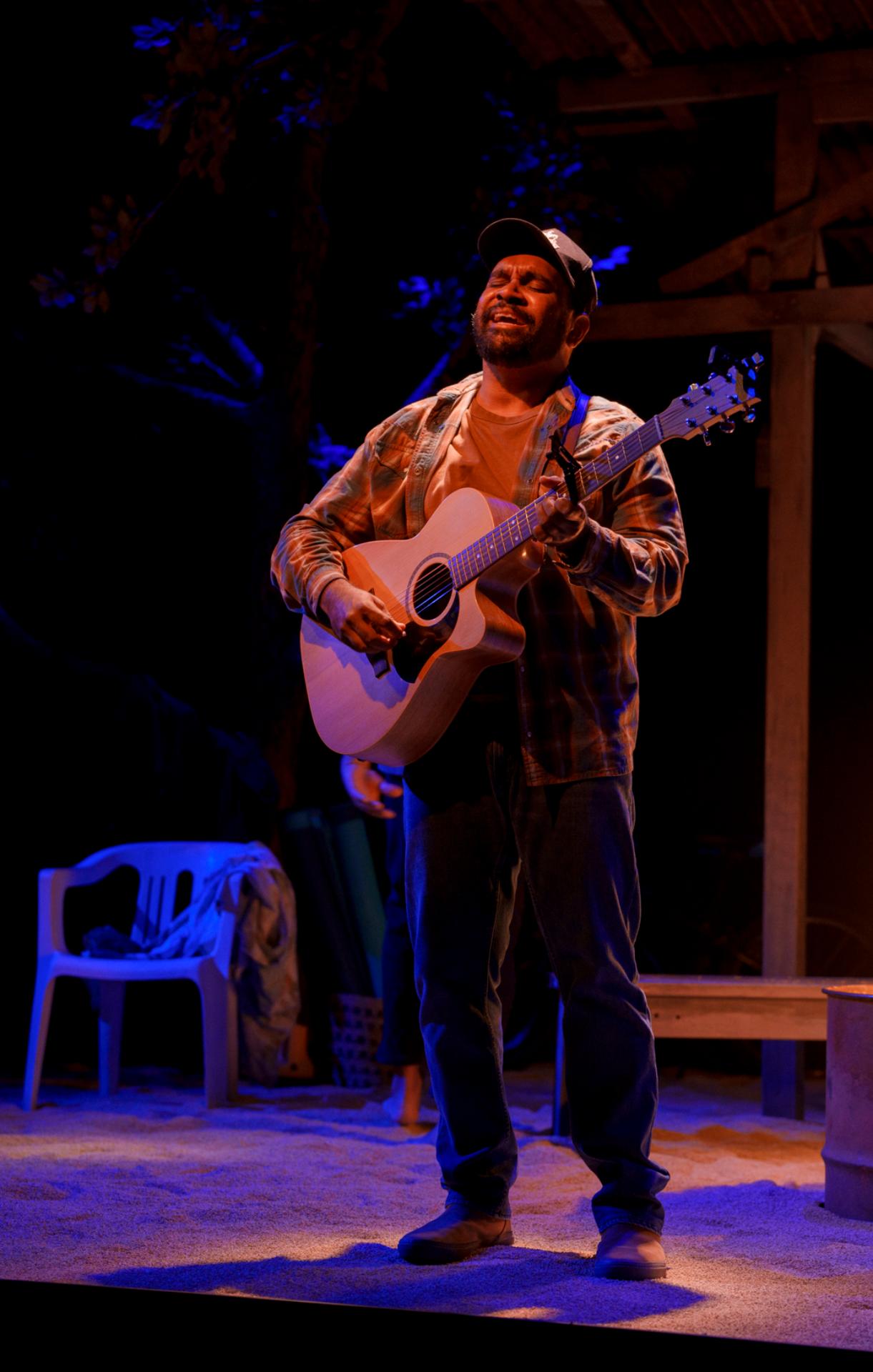 Kevin O’Brien’s set design anchors the production in an earthy, grounded sensibility, while Delvene Cockatoo-Collins’s costumes lend each character a sense of everyday authenticity. David Walters’s lighting is emotionally resonant throughout, shaping each moment with care, and Wil Hughes’s sound design infuses the work with a quiet tenderness that gently guides and deepens our empathetic response.