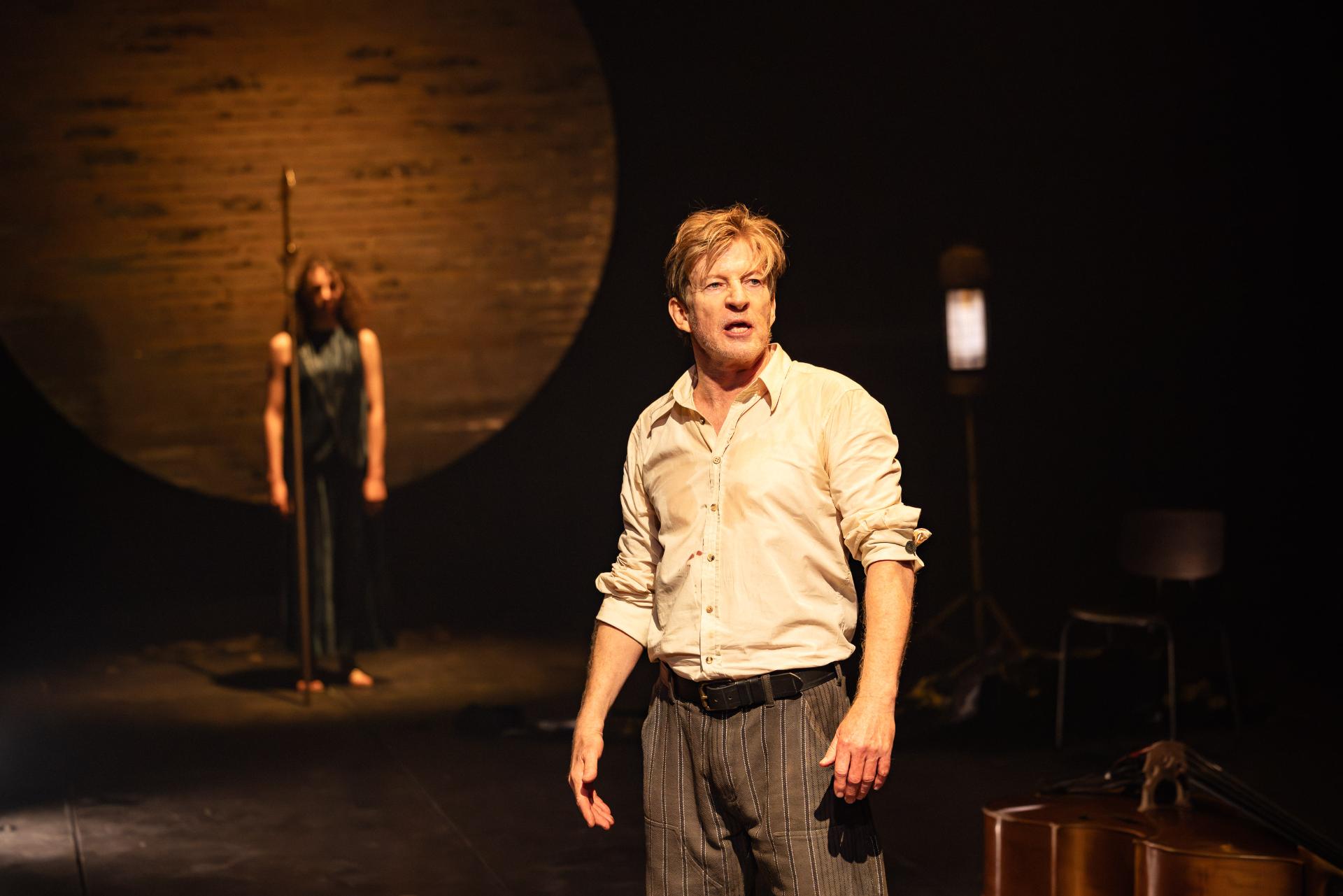 David Wenham, as The Poet, is the production’s undeniable gravitational centre. He commands the space with an effortless gravity that insists we treat this millennia-old narrative not as archaeological artefact, but as living testament. It is a performance of exquisite paradox: simultaneously casual and naturalistic, yet expansively theatrical, even operatic in its reach. Wenham achieves that rare alchemy where the actor’s own artistic intelligence becomes as captivating as the tale he unfolds. If the adaptation occasionally keeps us at arm’s length, Wenham’s magnetism draws us relentlessly back into the circle of the story.