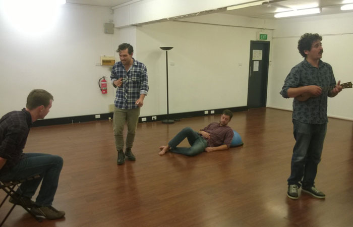 resdogs-03 Published 16/04/2014 at 700 × 450 in In Rehearsal: Shakespeare’s Reservoir Dogs « Previous Next » Sydney Shakepeare Company 2014 Shakespeare’s Reservoir Dogs