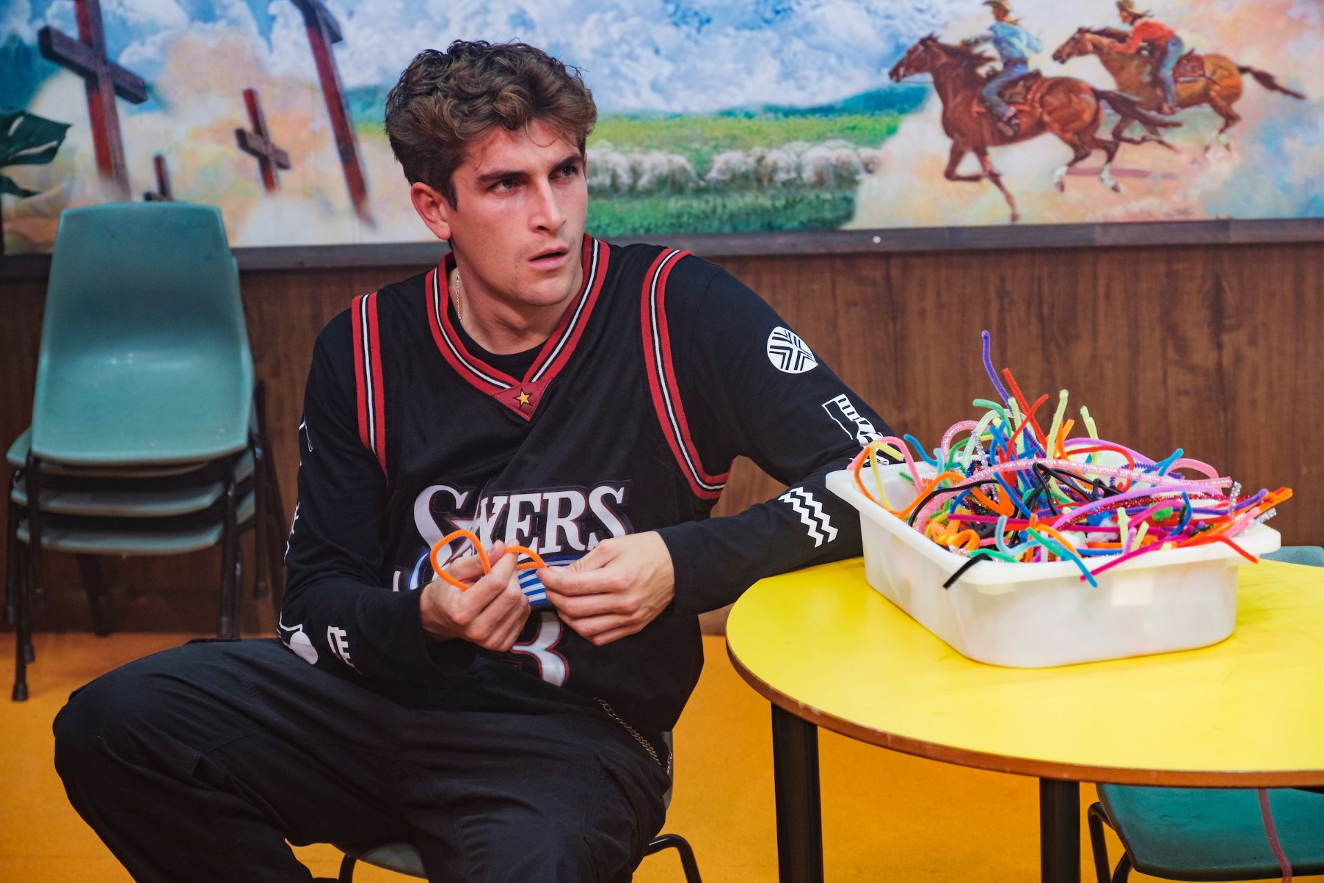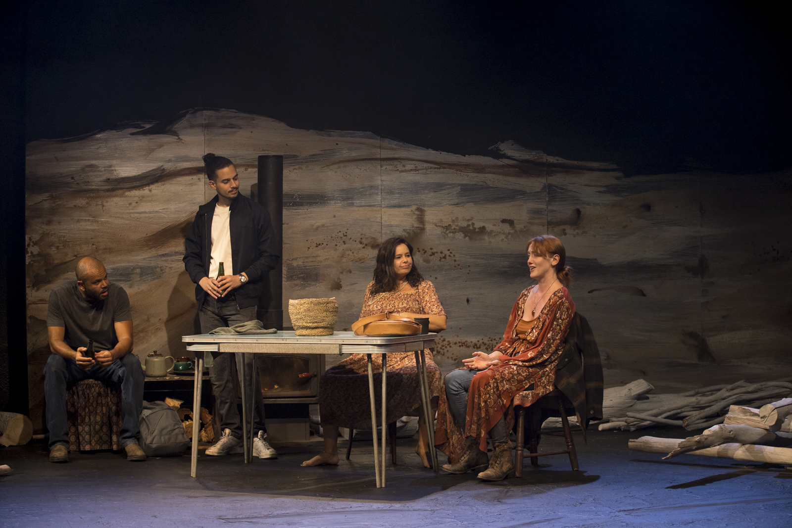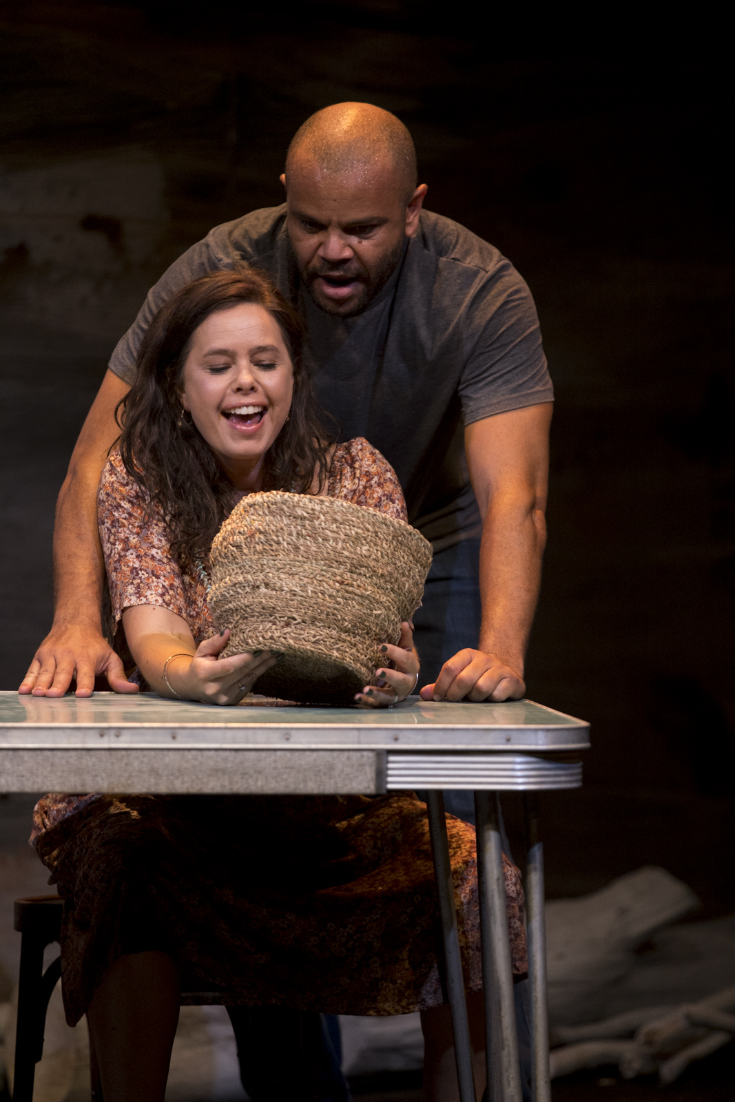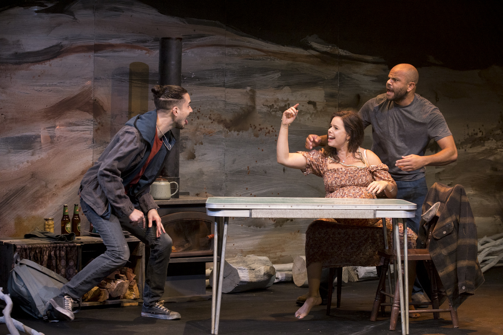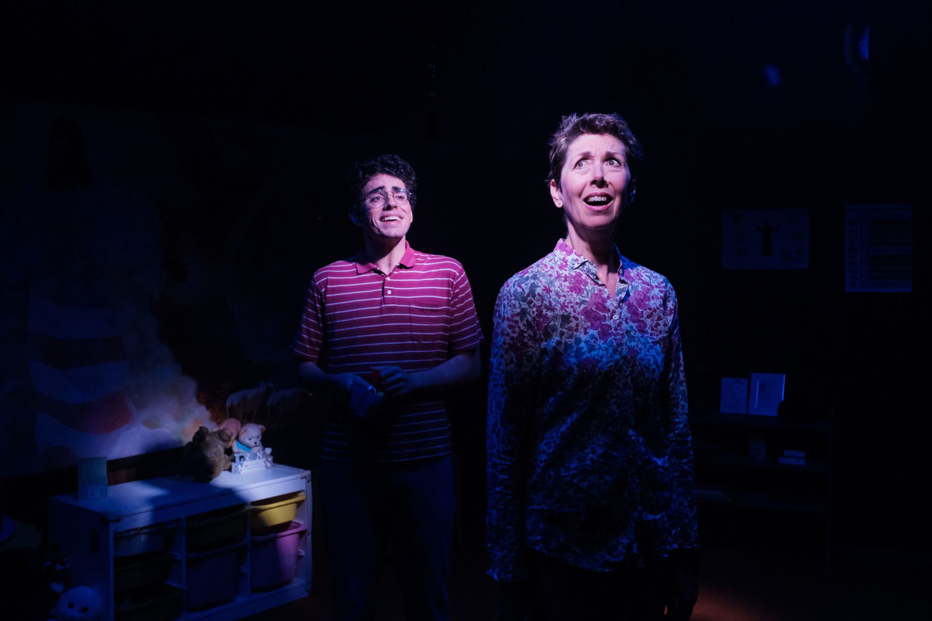 Set design by Jeremy Allen and Emma White is replete with sarcasm, in its depictions of religion and superstition, and also remarkable for its transformation of space, effective in providing the sensation of being immersed in parochial Americanness. Lights by Phoebe Pilcher, along with Daniel Herten’s sound design, are relied upon for sensory magnifications for the jokey paranormality, that forms the basis of the play’s pleasures.