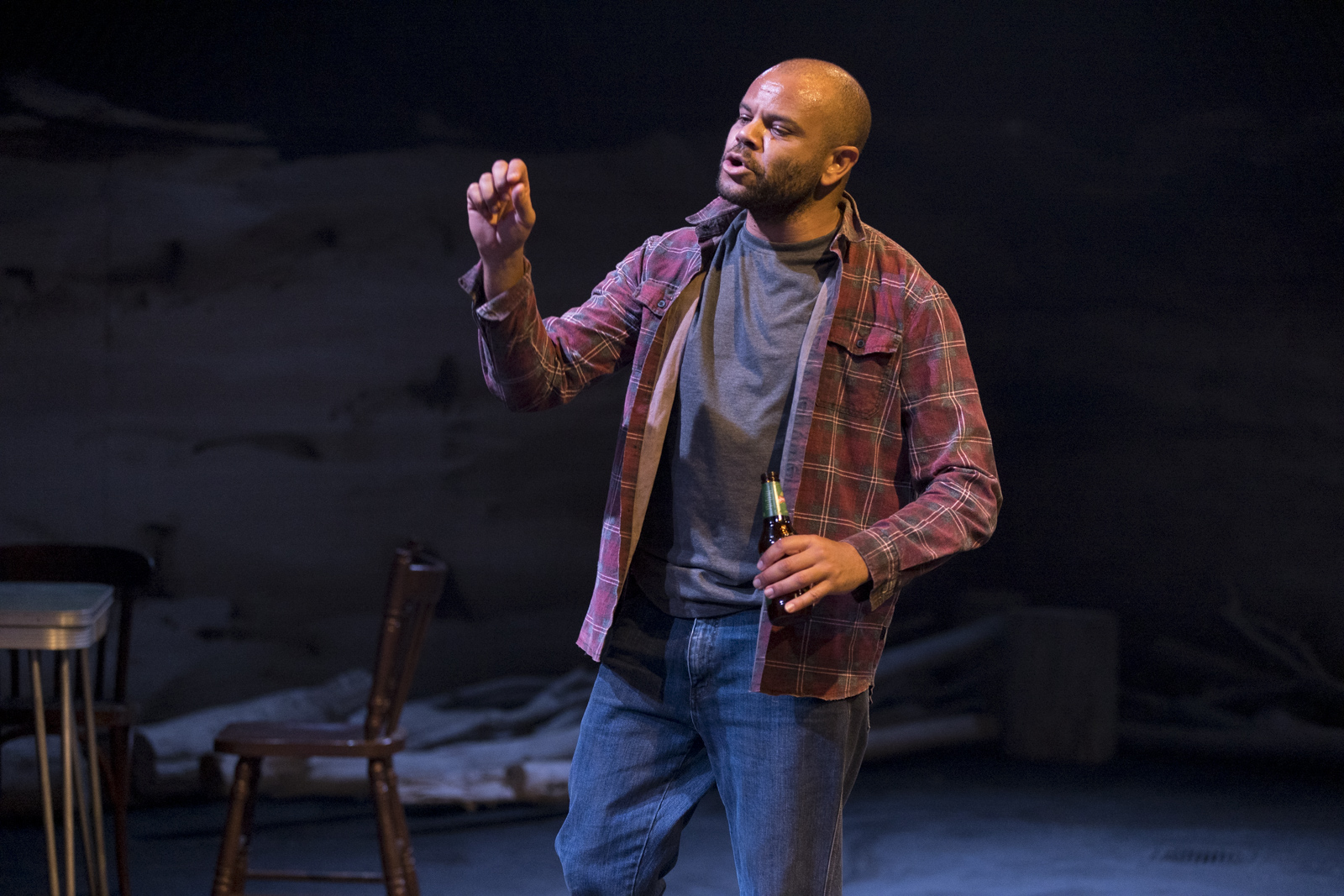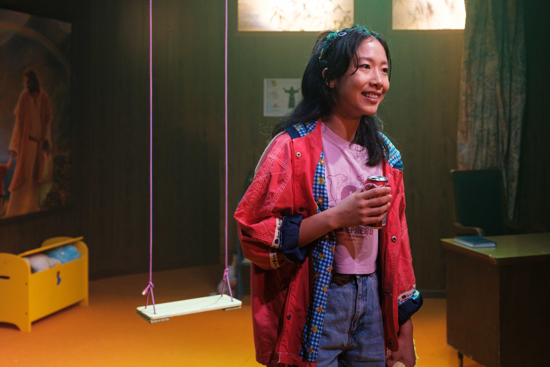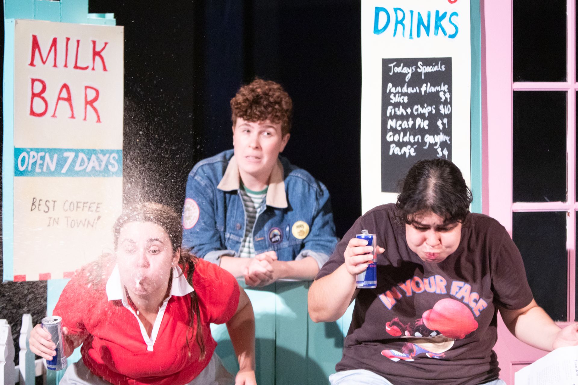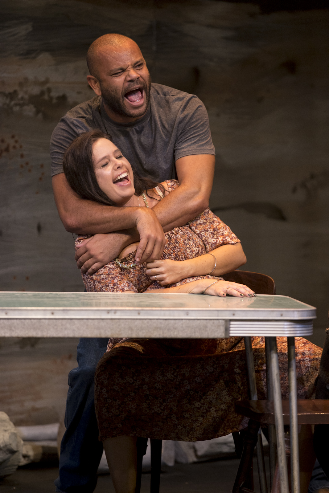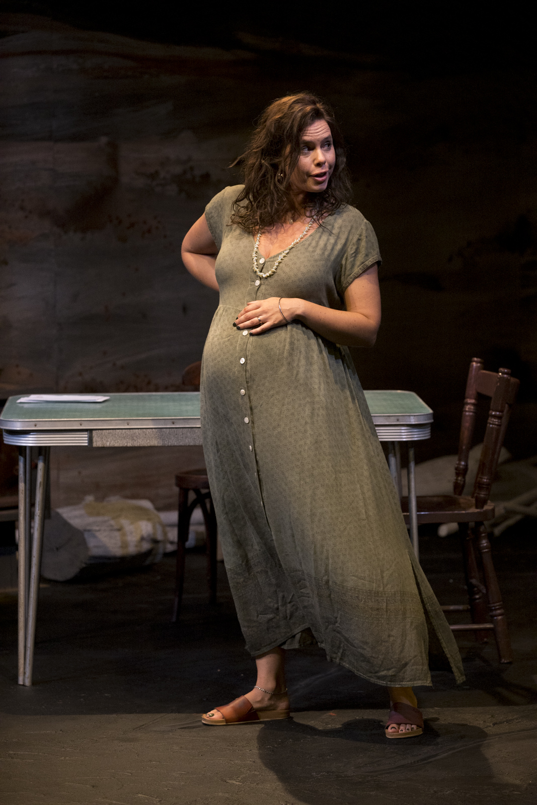Set design by Jeremy Allen and Emma White is replete with sarcasm, in its depictions of religion and superstition, and also remarkable for its transformation of space, effective in providing the sensation of being immersed in parochial Americanness. Lights by Phoebe Pilcher, along with Daniel Herten’s sound design, are relied upon for sensory magnifications for the jokey paranormality, that forms the basis of the play’s pleasures.
