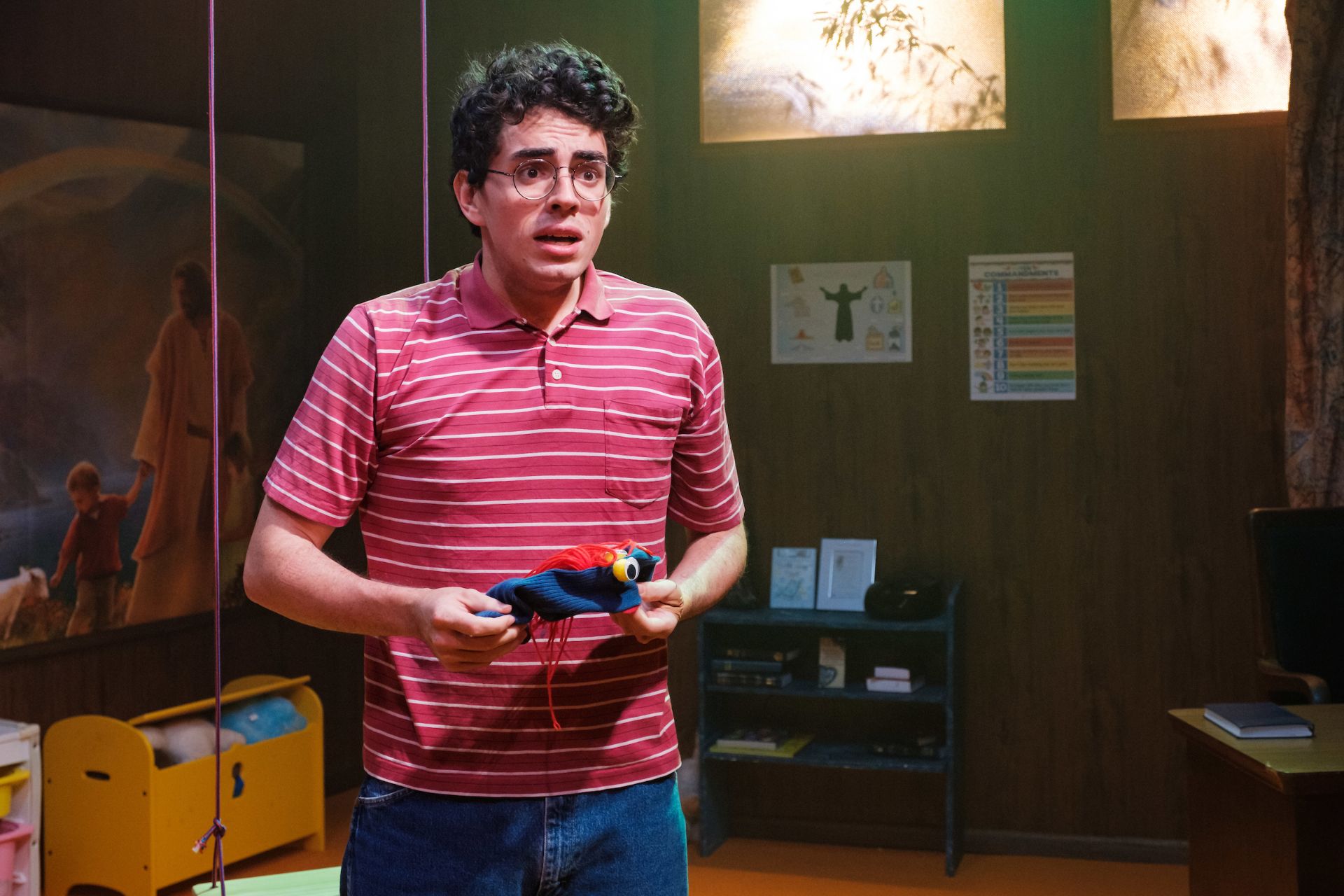 Recently widowed Margery is trying to get her life back together, but it seems her new responsibilities at church, of trying to teach puppetry to young teens, are working out very poorly. Her son Jason especially, is reacting in unimaginably terrifying ways, with his malicious puppet Tyrone seeming to take on a life of its own, to terrorise all and sundry. Robert Askins’ Hand to God toys with ideas around supernatural possession and dissociative disorders, but its greatest concern is trauma, a subject matter that the theatrical arts seem particularly adept at tackling.