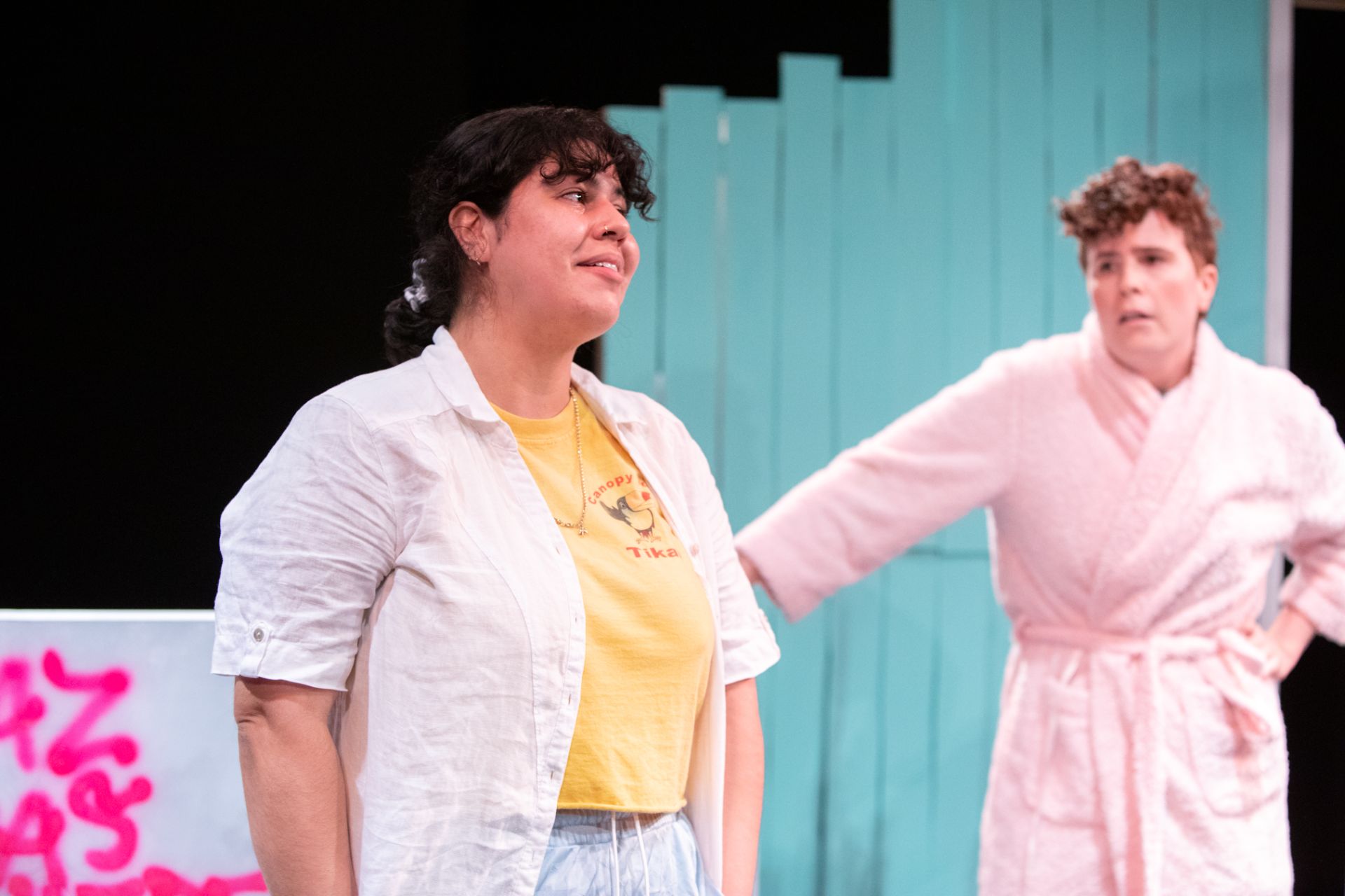 The enchanting Michelle Ny offers a critical dimension of purity to the story, even though her most memorable scene as Jessica, is anything but innocent. Ryan Morgan has the happy task of playing the entirely comedic part of Timothy, and is flawless with his bold choices, responsible for creating some of the show’s biggest laughs. Gerard Carroll’s wonderfully satirical take on Pastor Greg too, is hilarious, as he mocks the heart-breaking incapacity and voidness of religion.