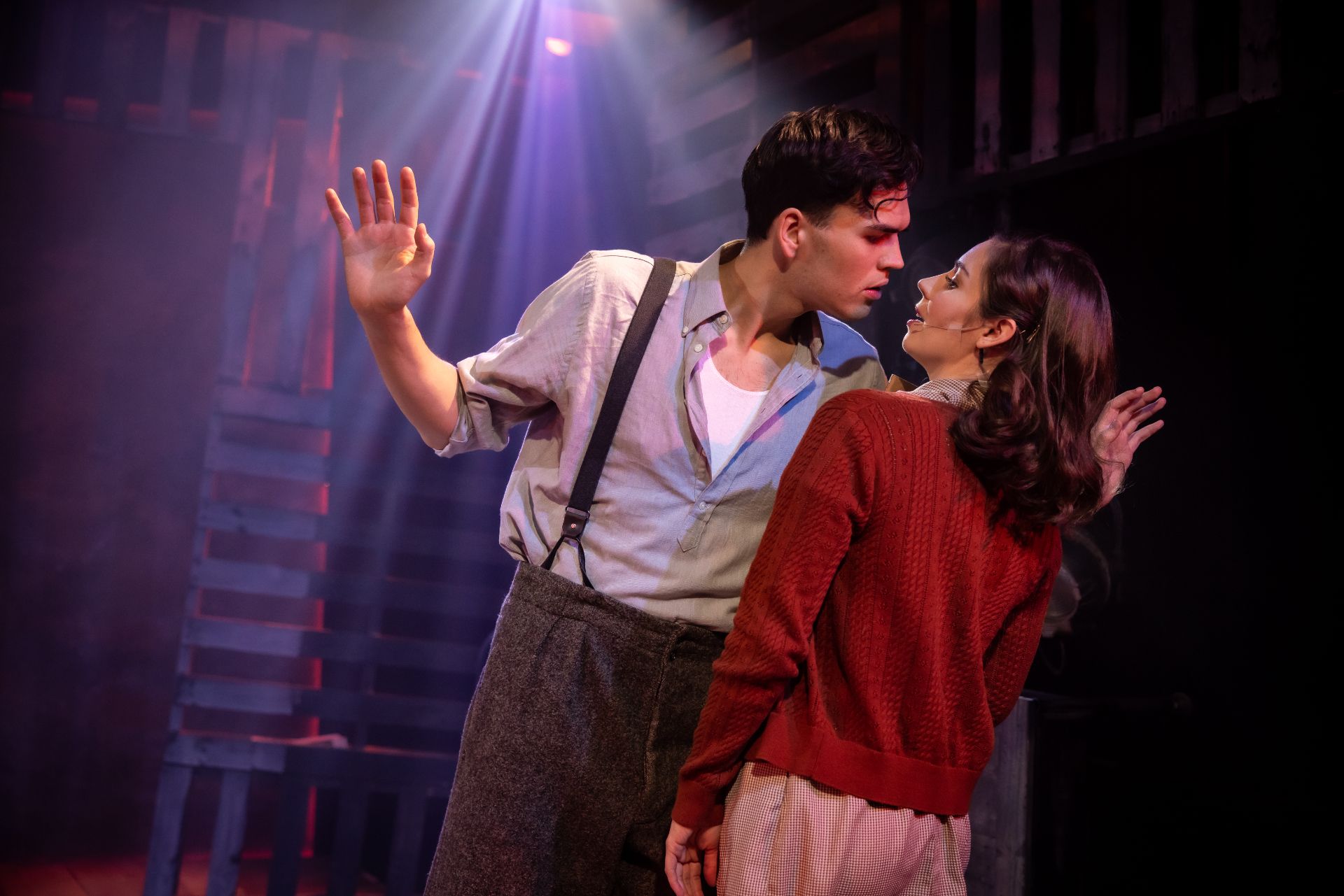 On stage, the scandalous couple’s story seems to lose all its lustre. Their personalities become too nice, and their lawlessness is portrayed too innocently. The book by Ivan Menchall feels uninspired, demonstrating that little about the legendary narrative remains captivating. Directed by Sam Hooper, who brings along an unmistakeable earnestness to this revival, but struggles to make the show deliver enough thrills and spills, even with the presence of firearms throughout the piece.