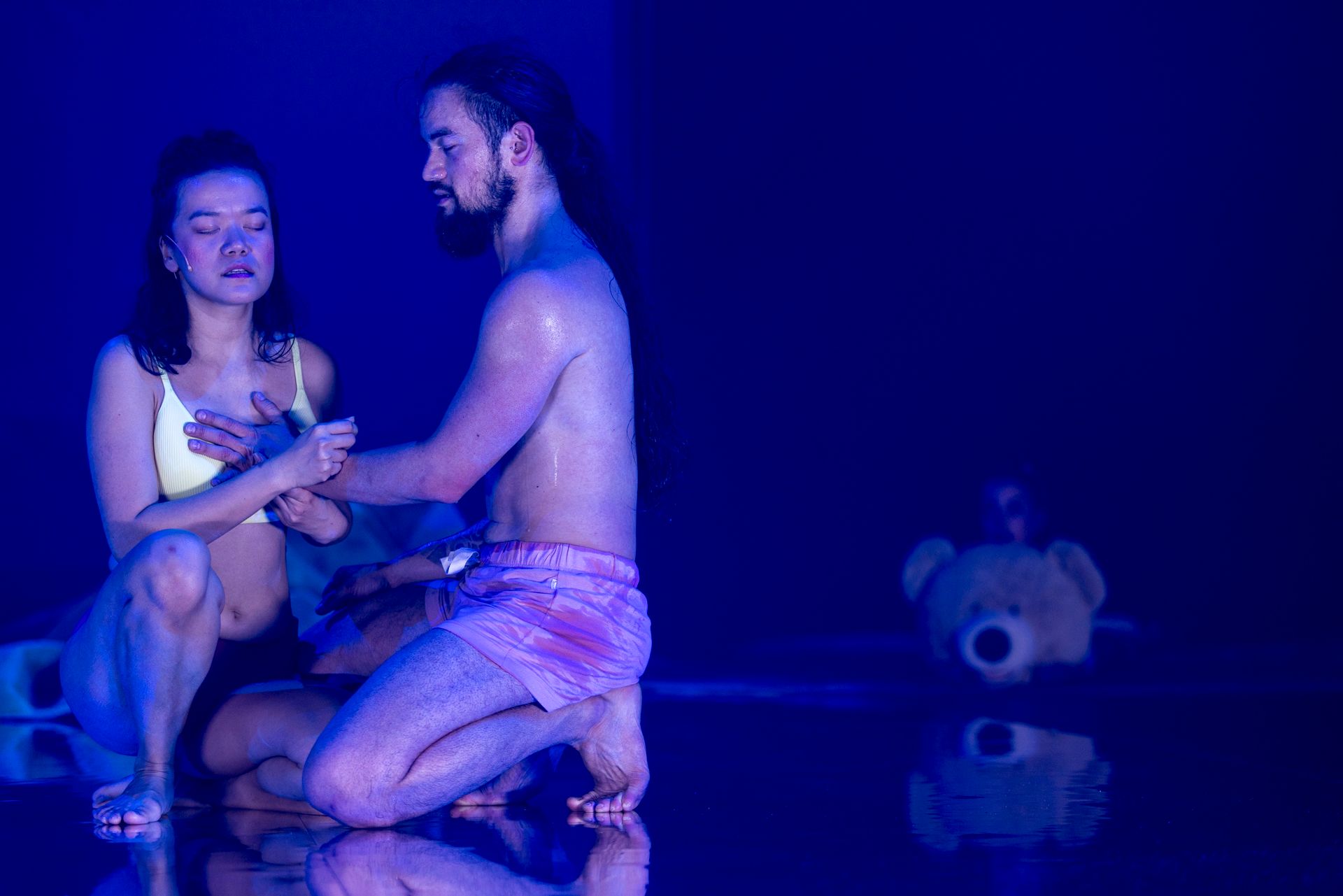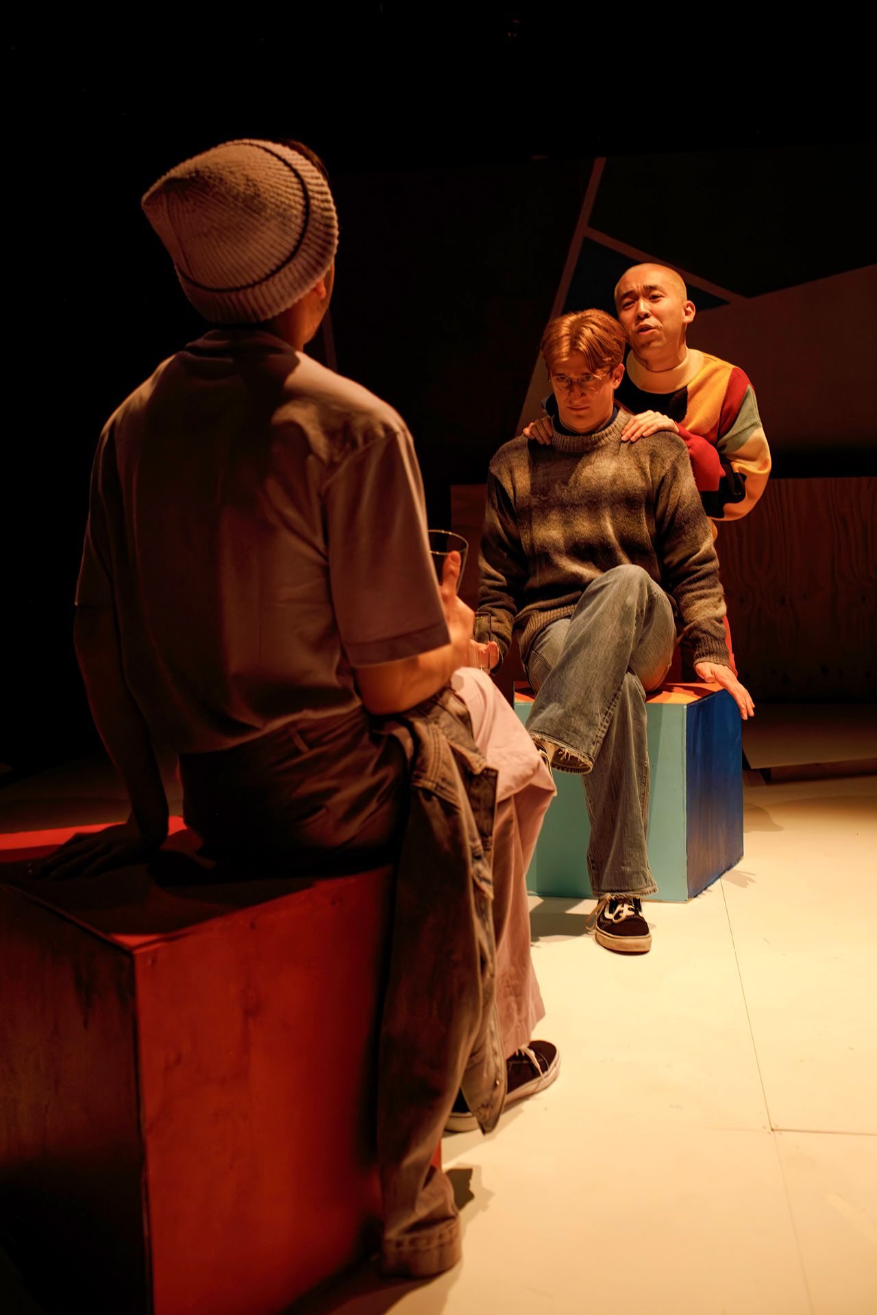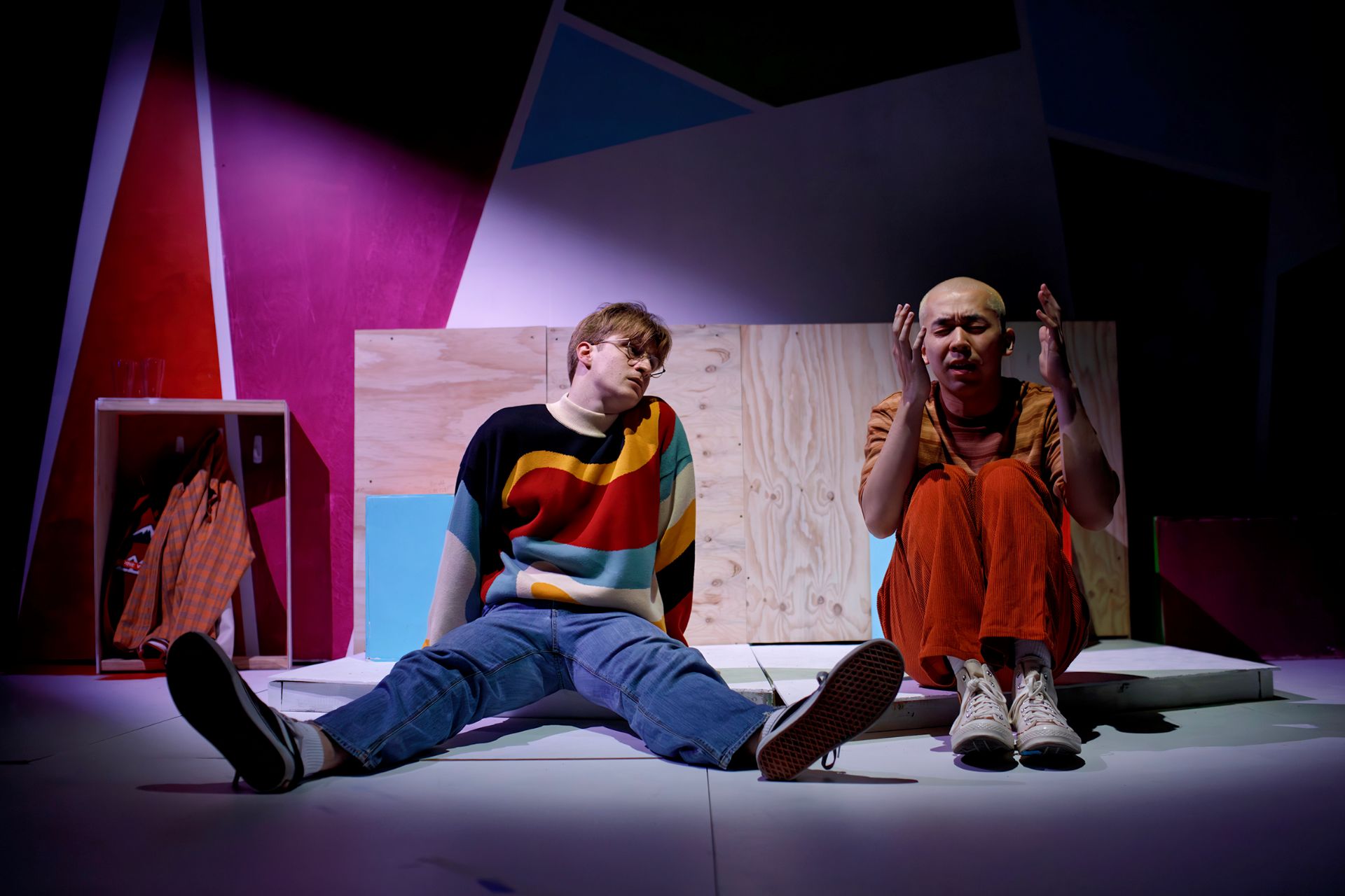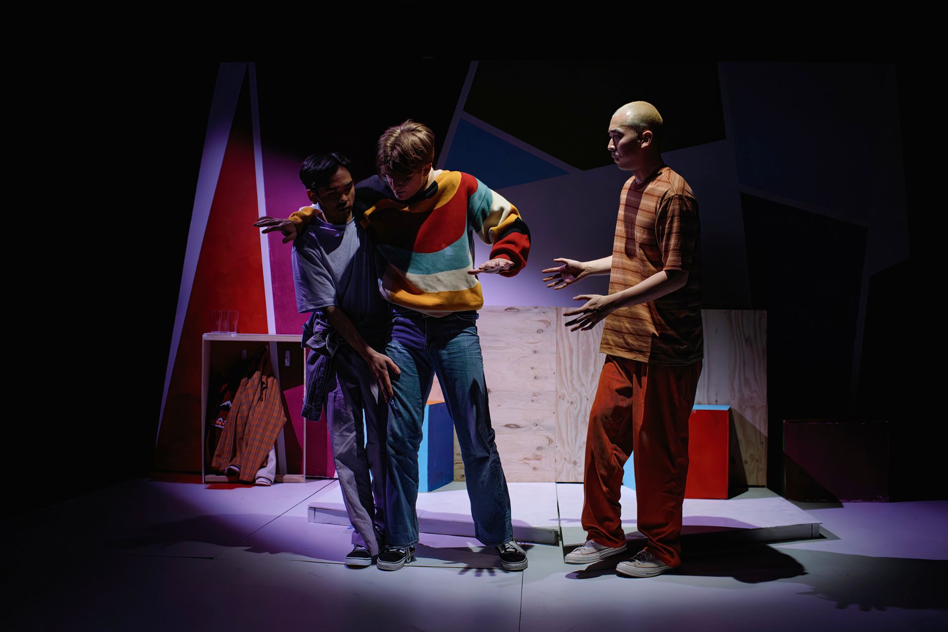 Set design by Paris Bell is simple but attractive, although its construction could benefit from greater finesse. Lily Mateljan’s costumes are very much of the times, pleasingly colourful in their depictions of the contemporary queer man. Lights by Catherine Mai are experimental and considered, beautiful in the ways they gently coax our minds into surprisingly generous spaces. Christine Pan’s sound and music are thoroughly rendered, to ensure that the experience is a rich one.