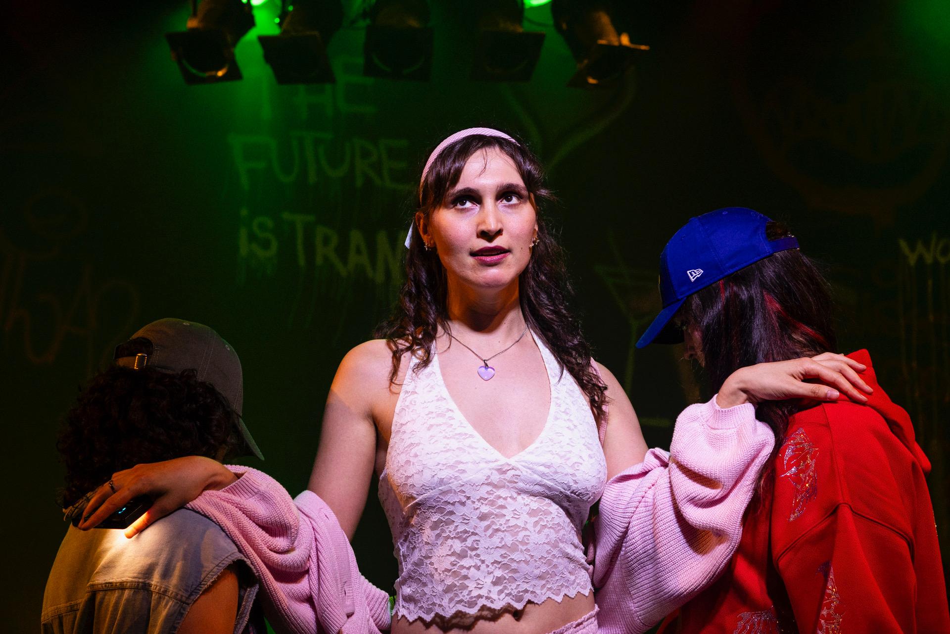 Hamilton herself proves a formidable stage presence as Avis, negotiating an impressive emotional register with a nuance that compels genuine investment in her predicament. Her excellent singing voice is a genuine joy, only amplifying the appeal of her catchy songwriting. The compelling Blake Appelqvist brings necessary credibility to the challenging role of Corrin, and the chemistry between the two principals lends the production its persuasive force. In supporting roles, Rosie Rai and Teo Vergara deserve particular mention for their depiction of a gender-nonconforming community rendered with humour and, crucially, tenderness.