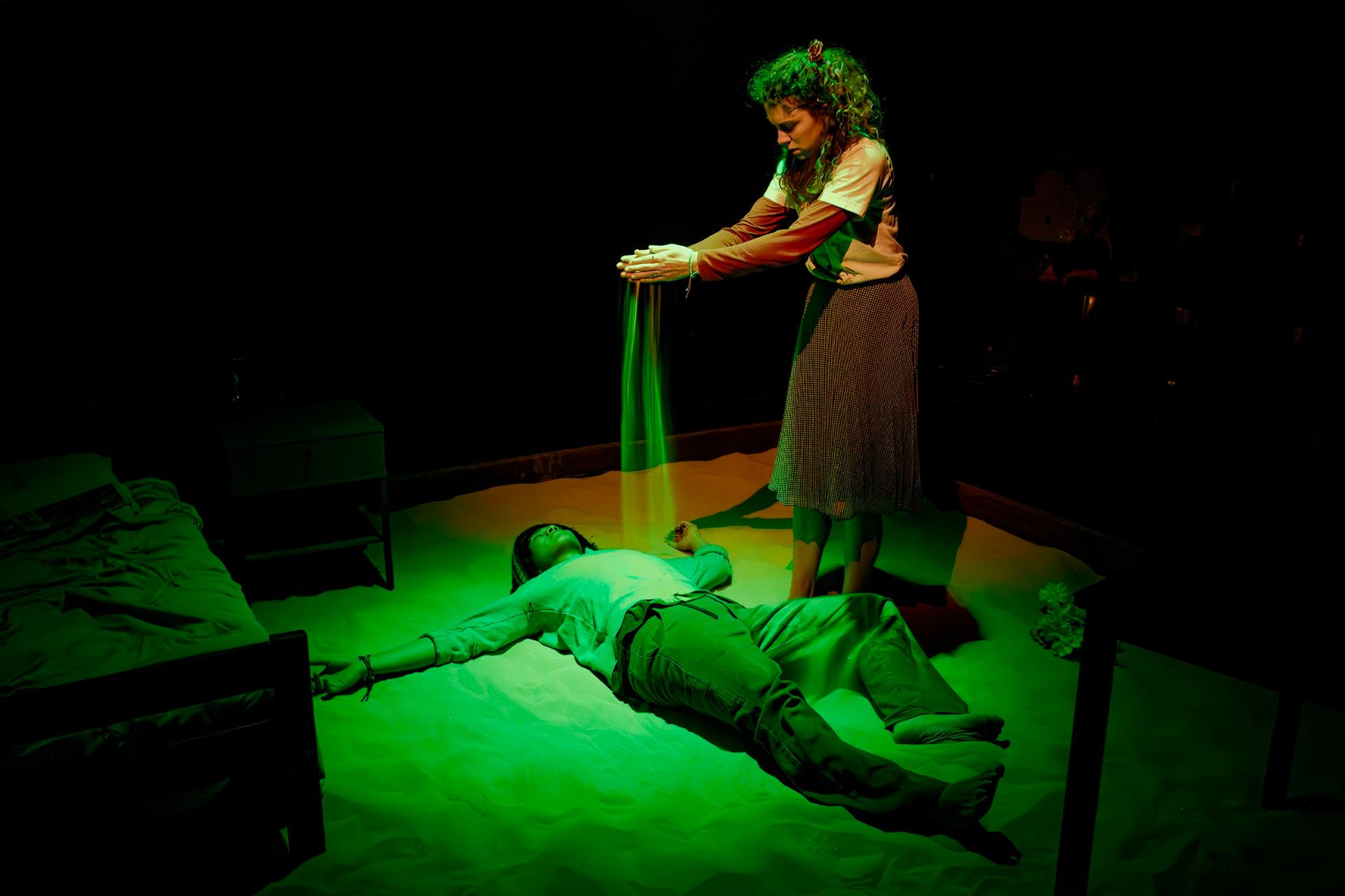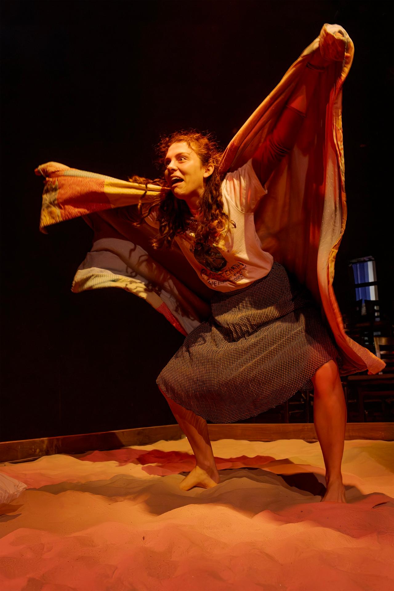 Mia MacCormick’s set design proves astute in its deployment of a sandpit as the production’s locus, a choice that amplifies the piece’s kinetic energy whilst furnishing a tactile materiality that resonates poignantly with its ecological preoccupations. Caity Cowan’s lighting design operates with commendable dynamism, demonstrating both laudable ambition and considerable intricacy. Cameron Smith’s soundscape ensures the audience remains oriented through the production’s rapid-fire succession of scene transitions.