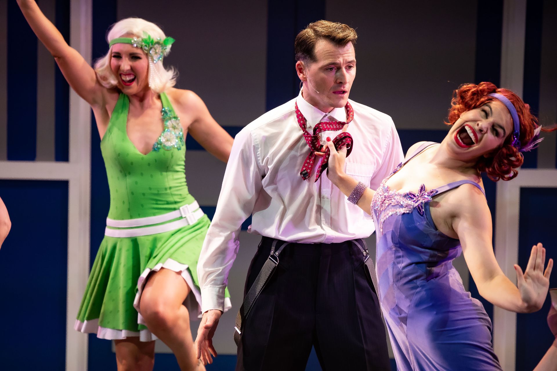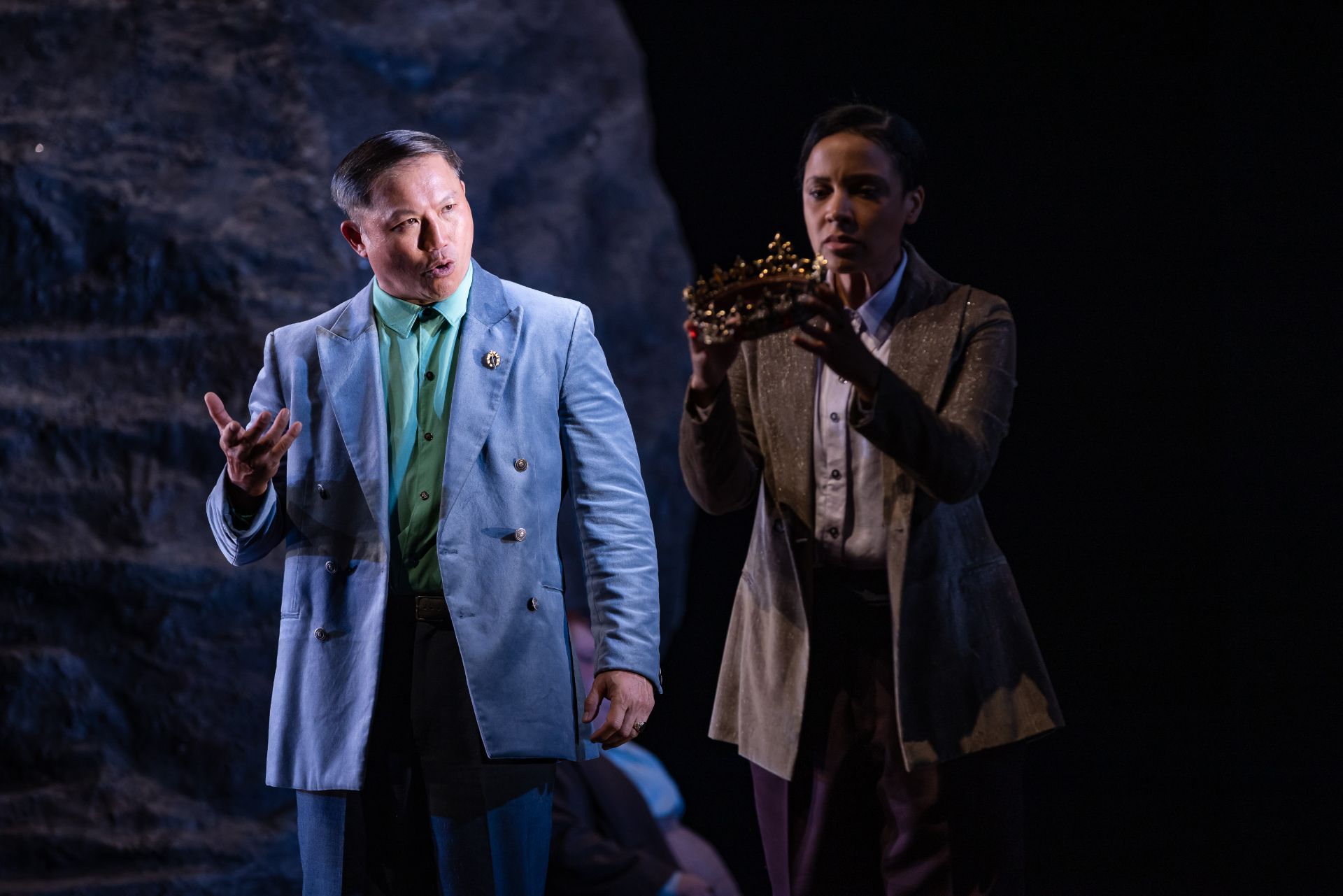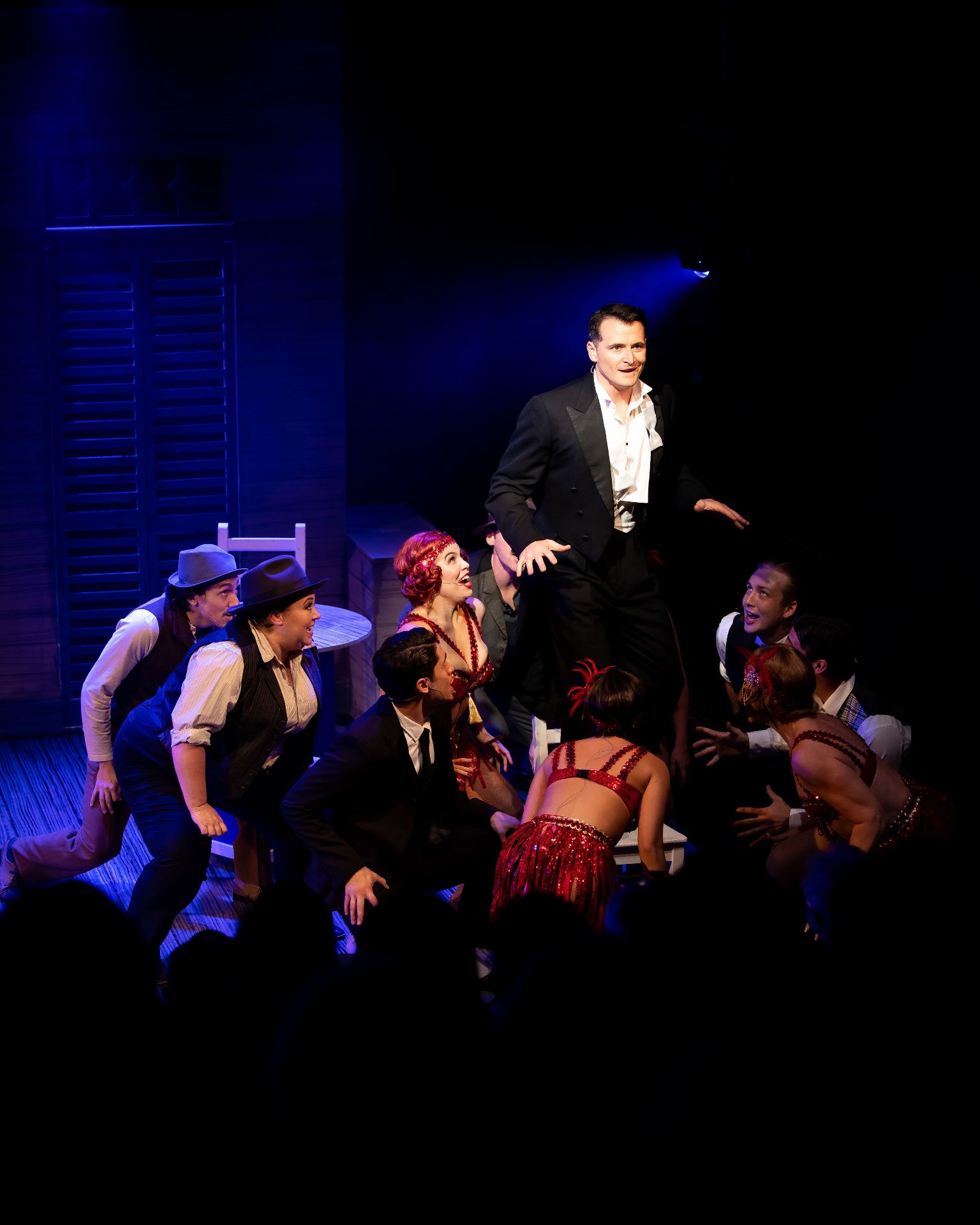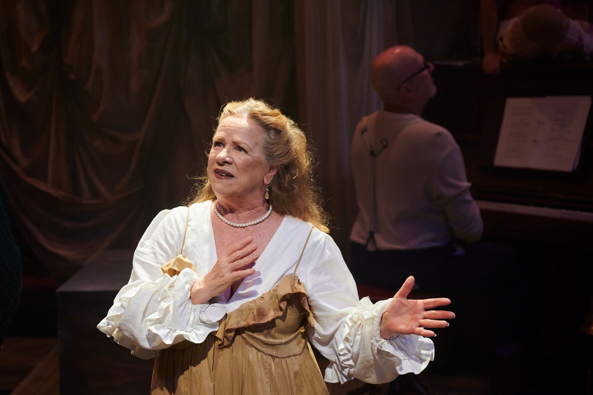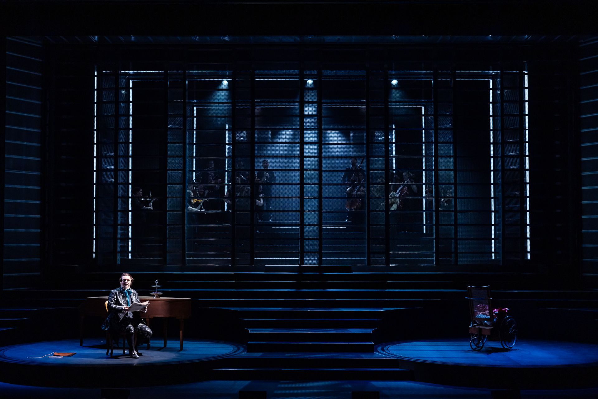 Almost half a century hence, Craig Ilott’s direction of the piece is memorable for its extravagant incorporation of live music (performed by The Metropolitan Orchestra), which delivers for the production an unmistakeable transcendence, such is the power of Mozart. Also highly impressive are costumes by Romance Was Born and Anna Cordingley, providing remarkable flourish and extraordinary exuberance, against a restrained black stage. Designed by Michael Scott-Mitchell, the set feels appropriately grand, with clever placement of stairs that facilitate many visually satisfying configurations of performers and their kaleidoscopic attire. Lights by Nick Schlieper offer a touch of sophistication, helping us pay attention to the real drama unfolding, in the middle of a lot of hullabaloo.