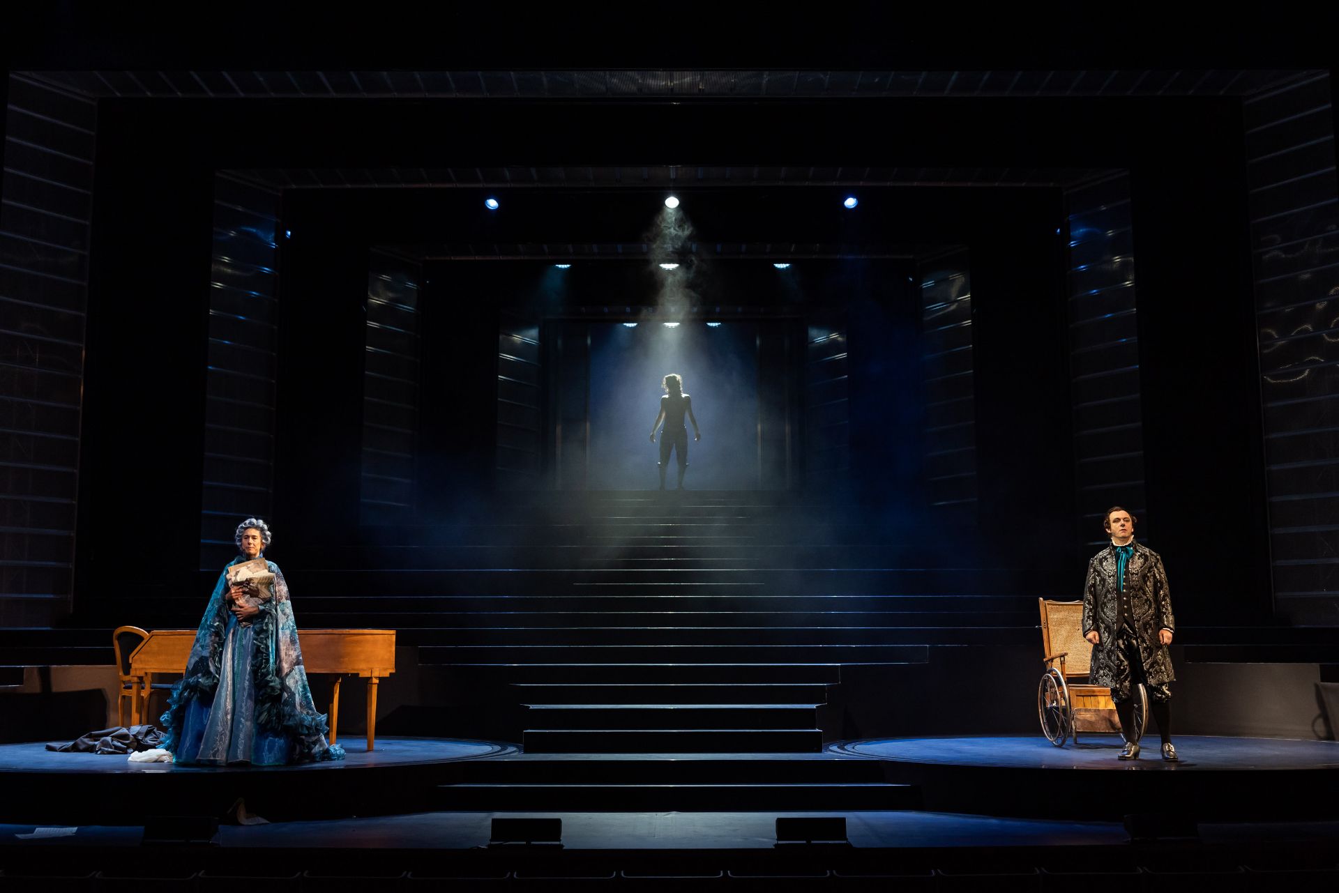 Actor Michael Sheen is full of mighty vigour, as the hateful Salieri, unrelenting in his assertions of passion and energy, for a story that urges meaningful introspection. More textured in approach is Rahel Romahn, whose Mozart proves endearing and exigently sympathetic. Both Sheen and Romahn bring great nuance and vulnerability to their roles, albeit in wildly contrasting styles. The wonderfully whimsical duo of Belinda Giblin and Josh Quong Tart, are notable as a pair of characters known as Venticelli, representing a more objective perspective in this controversially revisionist take on Mozart’s demise.
