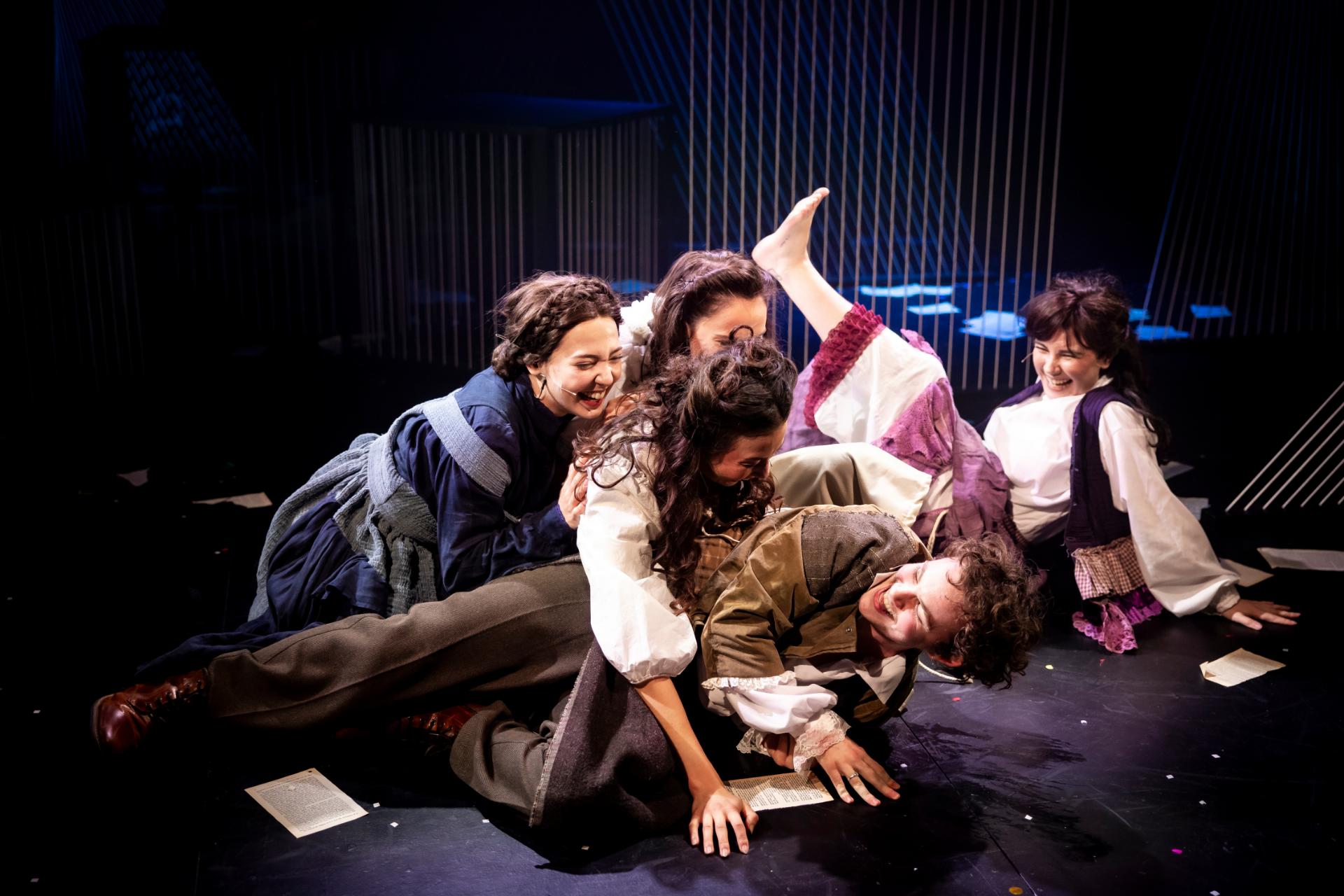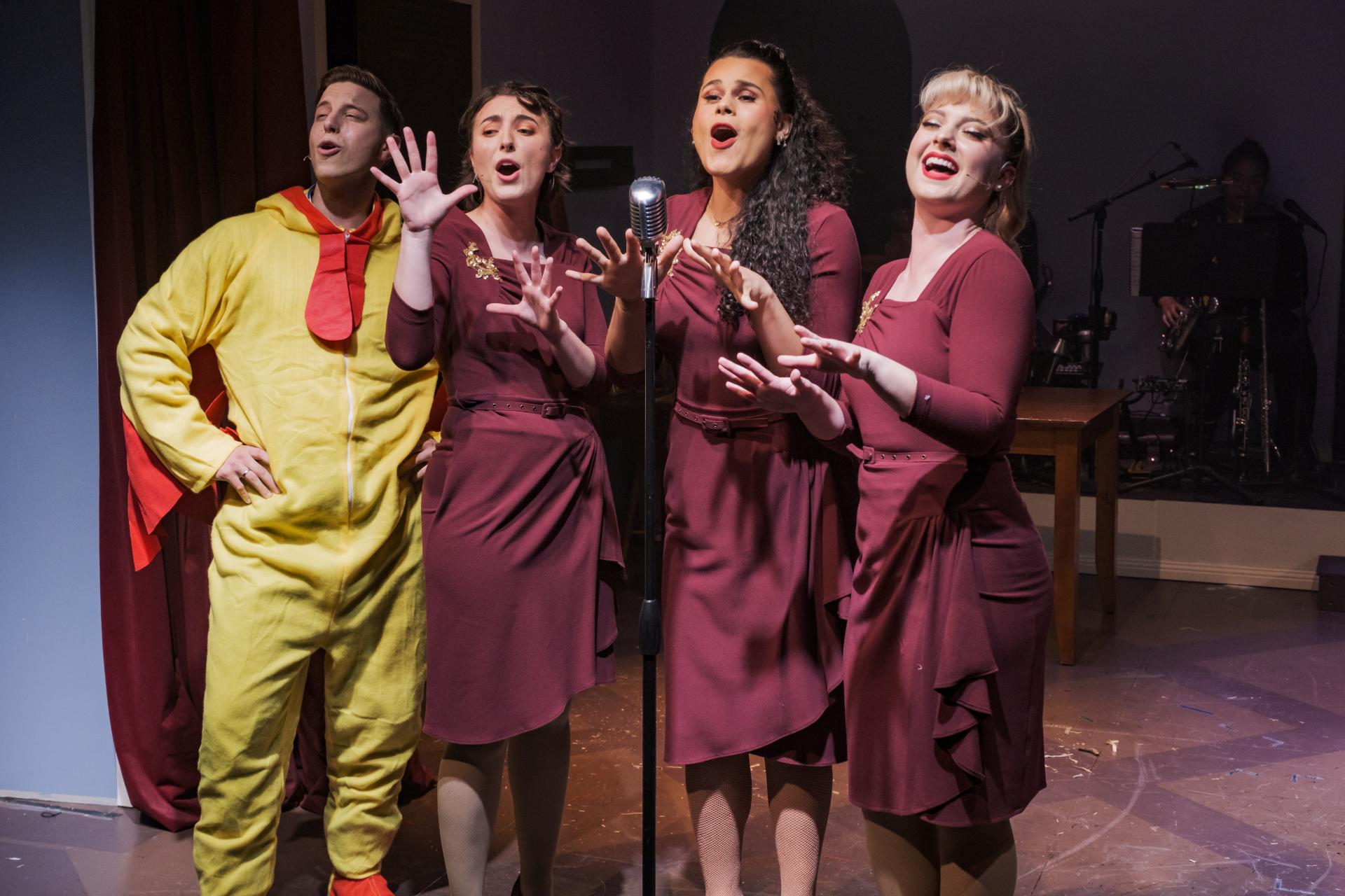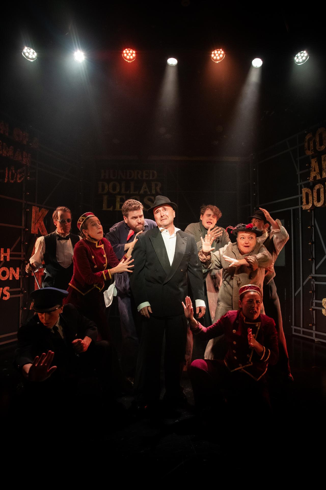 Hailley Hunt’s set design creates an evocative backdrop that conjures the spirit of a bygone era while leaving generous room for the cast’s exaggerated physicality. Mason Browne’s costumes root us in the period, yet it is their quiet audacity, the flickers of flamboyance woven almost mischievously through the fabric, that bring the stage to life. Trent Suidgeest’s lighting underscores that sense of spectacle, bold and effervescent, adding a touch of decadence to the show’s already radiant charm.